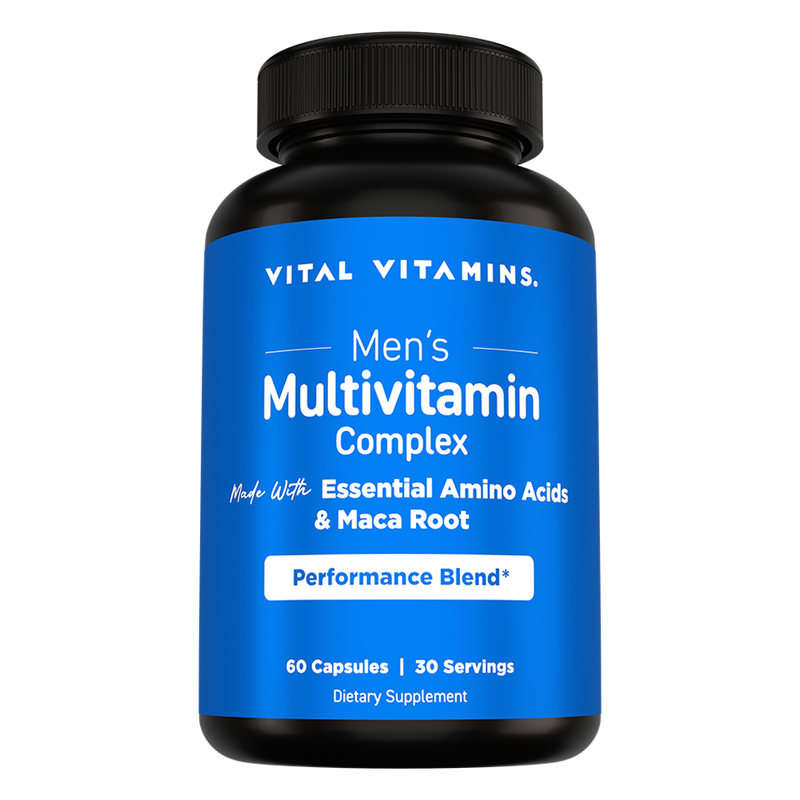 Men's Multivitamin Complex is a powerhouse formula designed to fuel male vitality, stamina, and recovery. Packed with essential vitamins, minerals, and an amino acid blend, it supports muscle recovery, endurance, and performance. Maca Root, Saw Palmetto, and Panax Ginseng enhance energy, prostate health, and overall wellness, while Vitamin D3, Vitamin C, and Zinc bolster immune resilience. This advanced blend goes beyond the basics, delivering targeted support for an active, thriving lifestyle.